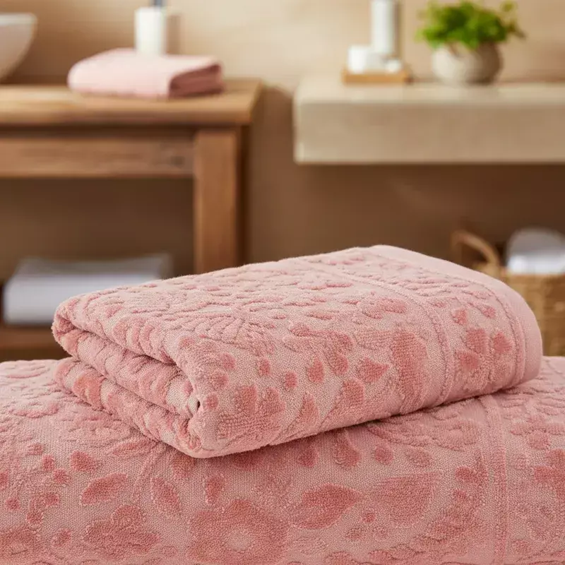 Juego de 1 toalla de cara y 1 toallón en jacquard de 100% algodón de 430 g/m2